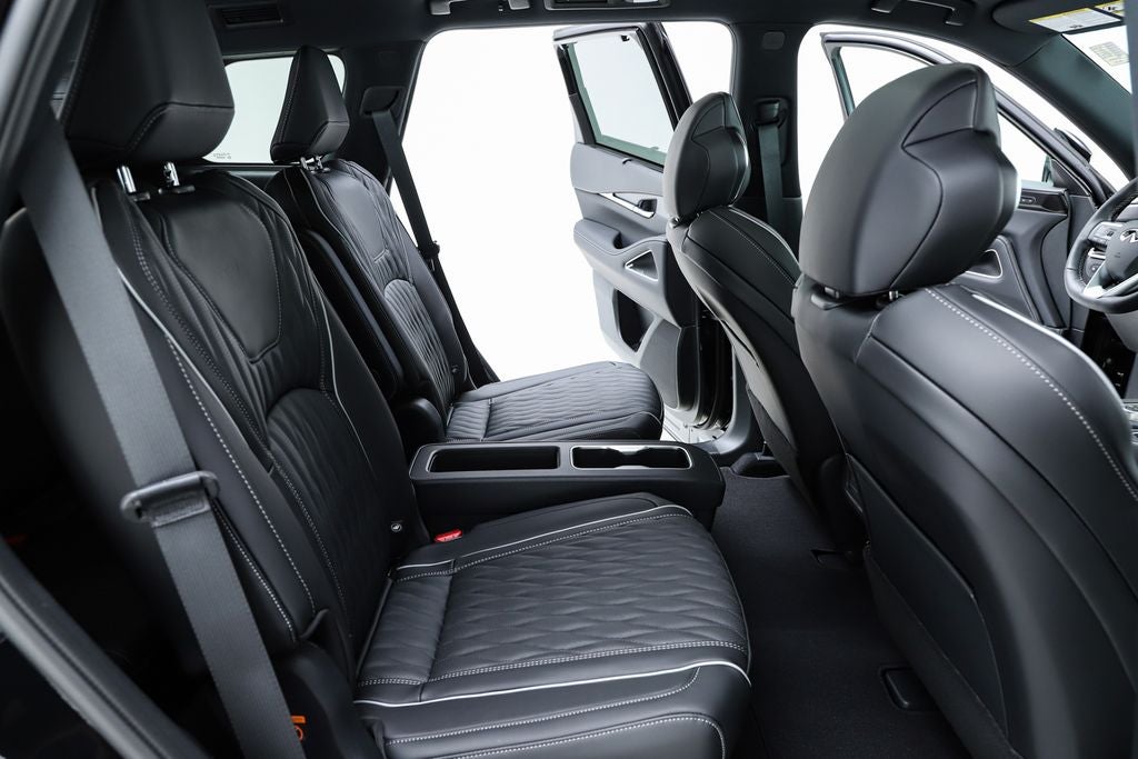 Harper INFINITI is excited to offer this good-looking 2026 INFINITI QX60 in Mineral Black HARPER INFINITI believes in the quality of the vehicles we sell so well that we provide an UNLIMITED MILES, POWERTRAIN WARRANTY on every new and qualifying pre-owned vehicle it sells!!! This warranty is good at any ASE certified shop in the 48 continental United States!! Check out all these great options Dark Cargo Package (Black Rear Bumper Film, Cargo Blocks, Cargo Mat, Cargo Net, and Medic Kit), 20 Speakers, 3rd row seats: bench, 4-Wheel Disc Brakes, ABS brakes, Air Conditioning, Alloy wheels, AM/FM radio: SiriusXM with 360L, Anti-whiplash front head restraints, Apple CarPlay/Android Auto, Auto High-beam Headlights, Auto tilt-away steering wheel, Auto-dimming door mirrors, Auto-dimming Rear-View mirror, Automatic temperature control, Black Roof Rail Crossbars, Bose Performance Series 17-Speaker Sound System, Brake assist, Bumpers: body-color, Carpeted Floor Mats with Captains Chairs on 3rd Row Tray, Climate Controlled Massaging Front Bucket Seats, Dark Illuminated Kick Plates, Delay-off headlights, Driver door bin, Driver vanity mirror, Dual front impact airbags, Dual front side impact airbags, Electronic Stability Control, Emergency communication system: INFINITI InTouch, Four wheel independent suspension, Front anti-roll bar, Front Bucket Seats, Front Center Armrest, Front dual zone A/C, Front reading lights, Fully automatic headlights, Garage door transmitter: HomeLink, Genuine wood door panel insert, Heads-Up Display, Heated door mirrors, Heated front seats, Heated rear seats, Heated steering wheel, Illuminated entry, INFINITI Radiant Dark Illuminated Cargo Scuff Plates, Knee airbag, Leather Shift Knob, Leather steering wheel, Literature Kit, Low tire pressure warning, Memory seat, Navigation system: Google Built-in, Occupant sensing airbag, Outside temperature display, Overhead airbag, Overhead console, Panic alarm, Passenger door bin, Passenger vanity mirror, Power door mirrors, Power driver seat, Power Liftgate, Power moonroof: Panoramic, Power passenger seat, Power steering, Power windows, Premium Paint, Radio data system, Radio: Klipsch Premiere Audio System, Rain sensing wipers, Rear air conditioning, Rear anti-roll bar, Rear reading lights, Rear side impact airbag, Rear window defroster, Rear window wiper, Reclining 3rd row seat, Remote keyless entry, Security system, Semi Aniline Leather-Appointed Seating Surfaces, Speed control, Speed-sensing steering, Speed-Sensitive Wipers, Splash Guards, Split folding rear seat, Spoiler, Steering wheel memory, Steering wheel mounted audio controls, Tachometer, Telescoping steering wheel, Tilt steering wheel, Traction control, Trip computer, Turn signal indicator mirrors, Variably intermittent wipers, Ventilated front seats, and Wheels: 20 x 8J Luxury Machined Aluminum Alloy. 22/27 City/Highway MPG