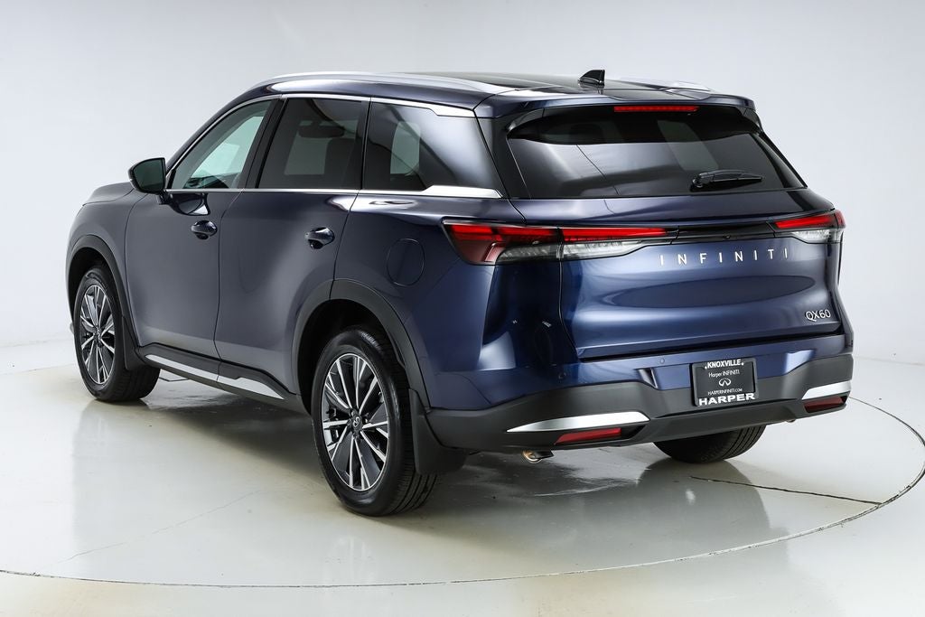 Harper INFINITI is pumped up to offer this terrific-looking 2026 INFINITI QX60 in Grand Blue HARPER INFINITI believes in the quality of the vehicles we sell so well that we provide an UNLIMITED MILES, POWERTRAIN WARRANTY on every new and qualifying pre-owned vehicle it sells!!! This warranty is good at any ASE certified shop in the 48 continental United States!! Check out all these great options Cargo Package (Cargo Blocks, Cargo Mat, Cargo Net, Clear Rear Bumper Film, and Medic Kit), 16 Speakers, 3rd row seats: bench, 4-Wheel Disc Brakes, ABS brakes, Air Conditioning, Alloy wheels, AM/FM radio: SiriusXM with 360L, Anti-whiplash front head restraints, Apple CarPlay/Android Auto, Auto High-beam Headlights, Auto tilt-away steering wheel, Auto-dimming door mirrors, Auto-dimming Rear-View mirror, Automatic temperature control, Bose Performance Series 17-Speaker Sound System, Brake assist, Bumpers: body-color, Climate Controlled Front Bucket Seats, Delay-off headlights, Driver door bin, Driver vanity mirror, Dual front impact airbags, Dual front side impact airbags, Electronic Stability Control, Emergency communication system: INFINITI InTouch, Four wheel independent suspension, Front anti-roll bar, Front Bucket Seats, Front Center Armrest, Front dual zone A/C, Front reading lights, Fully automatic headlights, Garage door transmitter: HomeLink, Heated door mirrors, Heated front seats, Heated rear seats, Heated steering wheel, Illuminated entry, Knee airbag, Leather Shift Knob, Leather steering wheel, Low tire pressure warning, Memory seat, Navigation system: Google Built-in, Occupant sensing airbag, Outside temperature display, Overhead airbag, Overhead console, Panic alarm, Passenger door bin, Passenger vanity mirror, Power door mirrors, Power driver seat, Power Liftgate, Power moonroof: Panoramic, Power passenger seat, Power steering, Power windows, Premium Paint, Radio data system, Radio: Klipsch Premium Audio System, Rain sensing wipers, Rear air conditioning, Rear anti-roll bar, Rear reading lights, Rear seat center armrest, Rear side impact airbag, Rear window defroster, Rear window wiper, Reclining 3rd row seat, Remote keyless entry, Security system, Speed control, Speed-sensing steering, Speed-Sensitive Wipers, Splash Guards, Split folding rear seat, Spoiler, Steering wheel memory, Steering wheel mounted audio controls, Tachometer, Tailorfit-Appointed Seating Surfaces, Telescoping steering wheel, Tilt steering wheel, Traction control, Trip computer, Turn signal indicator mirrors, Variably intermittent wipers, Ventilated front seats, and Wheels: 20 x 8J Machined Aluminum Alloy. 22/28 City/Highway MPG