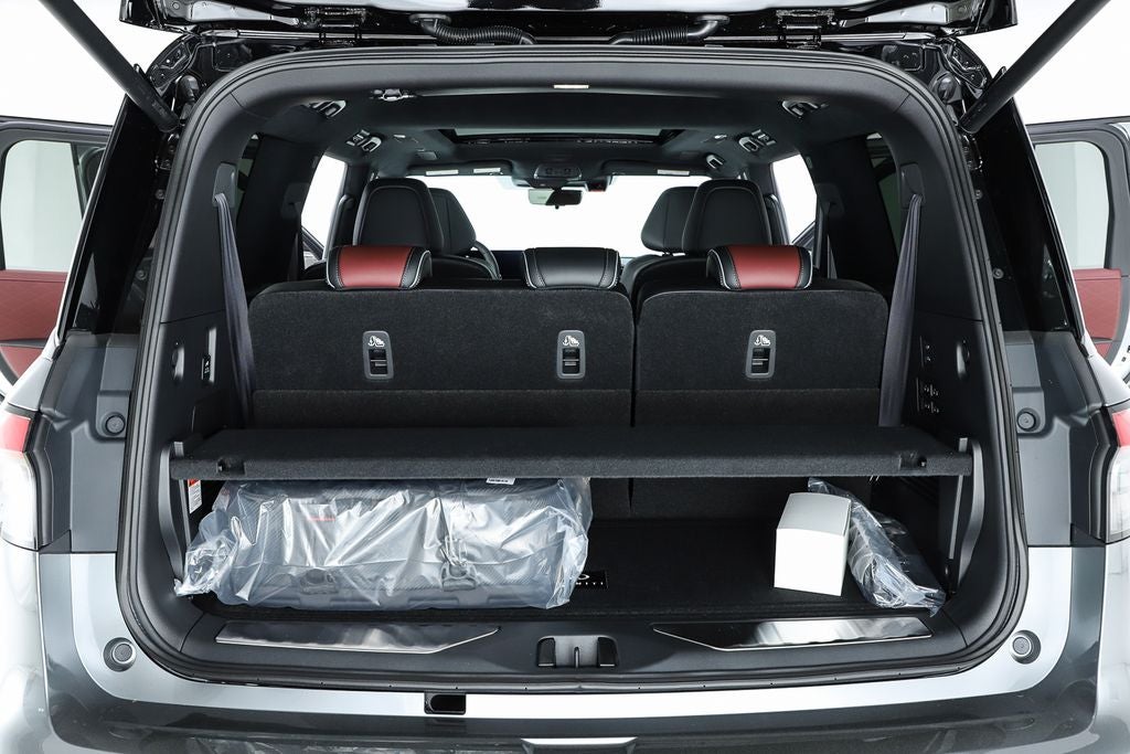 Harper INFINITI is pleased to offer this stunning-looking 2026 INFINITI QX80 in Dynamic Metal/Black Obsidian HARPER INFINITI believes in the quality of the vehicles we sell so well that we provide an UNLIMITED MILES, POWERTRAIN WARRANTY on every new and qualifying pre-owned vehicle it sells!!! This warranty is good at any ASE certified shop in the 48 continental United States!! Check out all these great options Premium Cargo Package (Cargo Blocks/Stabilizers, Cargo Shelf/Barrier, Carpeted Cargo Area Protector, Console Net, and Soft-Sided Cargo Cooler), 3rd row seats: bench, 4-Wheel Disc Brakes, ABS brakes, Adaptive suspension, Air Conditioning, Alloy wheels, AM/FM radio: SiriusXM with 360L, Anti-whiplash front head restraints, Apple CarPlay/Android Auto, Audio memory, Auto High-beam Headlights, Auto tilt-away steering wheel, Auto-dimming door mirrors, Auto-dimming Rear-View mirror, Auto-leveling suspension, Automatic temperature control, Brake assist, Bumpers: body-color, Compass, Delay-off headlights, Driver door bin, Driver vanity mirror, Dual front impact airbags, Dual front side impact airbags, Electronic Stability Control, Emergency communication system: INFINITI InTouch, Four wheel independent suspension, Front anti-roll bar, Front Bucket Seats, Front Center Armrest, Front dual zone A/C, Front reading lights, Fully automatic headlights, Garage door transmitter: myQ Connected Garage, Genuine wood dashboard insert, Genuine wood door panel insert, Heads-Up Display, Heated and Climate Controlled Front Bucket Seats with Massage, Heated door mirrors, Heated front seats, Heated rear seats, Heated steering wheel, HVAC memory, Illuminated entry, Knee airbag, Leather steering wheel, Low tire pressure warning, Memory seat, Navigation system: Google Built-in, Occupant sensing airbag, Outside temperature display, Overhead airbag, Overhead console, Panic alarm, Passenger door bin, Passenger vanity mirror, Power door mirrors, Power driver seat, Power Liftgate, Power moonroof, Power passenger seat, Power steering, Power windows, Radio data system, Radio: Klipsch Premiere Audio System, Rain sensing wipers, Rear air conditioning, Rear anti-roll bar, Rear reading lights, Rear seat center armrest, Rear window defroster, Rear window wiper, Reclining 3rd row seat, Remote keyless entry, Security system, Semi-Aniline Premium Leather Seating Surfaces, Speed control, Speed-sensing steering, Splash Guards, Split folding rear seat, Spoiler, Steering wheel memory, Steering wheel mounted audio controls, Tachometer, Telescoping steering wheel, Tilt steering wheel, Traction control, Trip computer, Turn signal indicator mirrors, Two-Tone Premium Paint, Variably intermittent wipers, Ventilated front seats, Ventilated rear seats, and Wheels: 22 x 8.5J Cast Aluminum-Alloy.