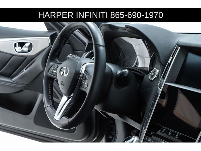 Harper INFINITI is excited to offer this stunning Q50 EDITION 30 in Gray. HARPER INFINITI believes in the quality of the vehicles we sell so well that we provide an UNLIMITED MILES, POWERTRAIN WARRANTY on every new and qualifying pre-owned vehicle it sells!!! This warranty is good at any ASE certified shop in the 48 continental United States!! Check out all these great options - Navigation system: INFINITI InTouch Navigation, All Weather Package, 6 Speakers, AM/FM radio: SiriusXM, CD player, Radio data system, Radio: INFINITI InTouch w/AM/FM/HD/CD, Air Conditioning, Automatic temperature control, Front dual zone A/C, Rear window defroster, Power driver seat, Power steering, Power windows, Remote keyless entry, Steering wheel mounted audio controls, Four wheel independent suspension, Traction control, 4-Wheel Disc Brakes, ABS brakes, Dual front impact airbags, Dual front side impact airbags, Emergency communication system: INFINITI Connection, Front anti-roll bar, Low tire pressure warning, Occupant sensing airbag, Overhead airbag, Rear anti-roll bar, Power moonroof, Blind Spot Warning, Brake assist, Electronic Stability Control, Delay-off headlights, Front fog lights, Fully automatic headlights, Panic alarm, Security system, Speed control, Bumpers: body-color, Carbon Fiber Rear Decklid Spoiler, Heated door mirrors, Power door mirrors, Splash Guards, Turn signal indicator mirrors, All-Season Floor Mats, Apple CarPlay/Android Auto, Auto-dimming Rear-View mirror, Compass, Driver door bin, Driver vanity mirror, Front reading lights, Garage door transmitter: HomeLink, Heated steering wheel, Illuminated entry, INFINITI Radiant Welcome Lighting, Leather Shift Knob, Leather steering wheel, Literature Kit, Outside temperature display, Overhead console, Passenger vanity mirror, Rear reading lights, Rear seat center armrest, Rear USB Charging Ports, Tachometer, Telescoping steering wheel, Tilt steering wheel, Trip computer, Trunk Protector, Front Bucket Seats, Front Center Armrest, Heated front seats, Heated Front Sport Seats, Leather-Appointed Seating Surfaces, Power passenger seat, Split folding rear seat, Passenger door bin, Alloy wheels, Wheels: 19 x 8.5 Aluminum-Alloy, Rain sensing wipers, Speed-Sensitive Wipers, Variably intermittent wipers.