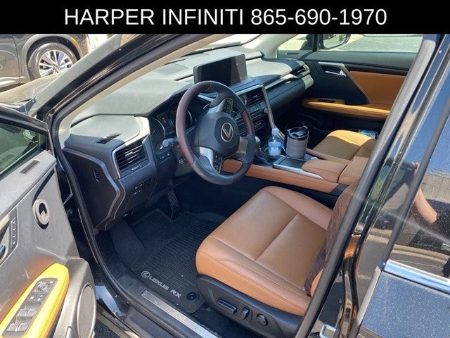 Harper Infiniti is excited to offer this stunning 2021 Lexus RX 350 in Black. HARPER INFINITI believes in the quality of the vehicles we sell so well that we provide an UNLIMITED MILES, POWERTRAIN WARRANTY on every new and qualifying pre-owned vehicle it sells!!! This warranty is good at any ASE certified shop in the 48 continental United States!! Check out all these great options - heated and ventilated front seats, 12.3 navigation system with premium Mark Levinson audio, intuitive parking assist with panoramic view monitor, tilt and slide moonroof, and luxurious wood and leather-wrapped heated steering wheel.