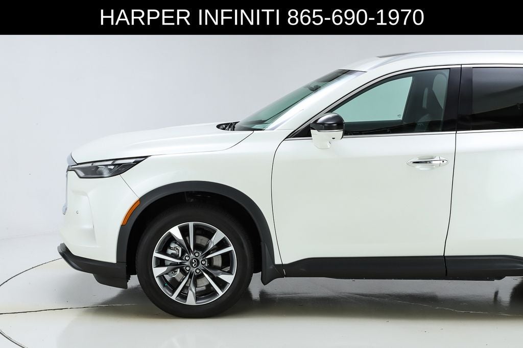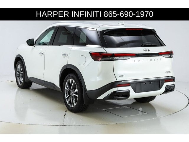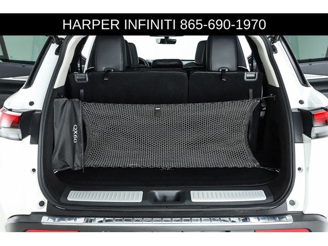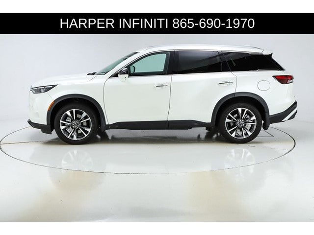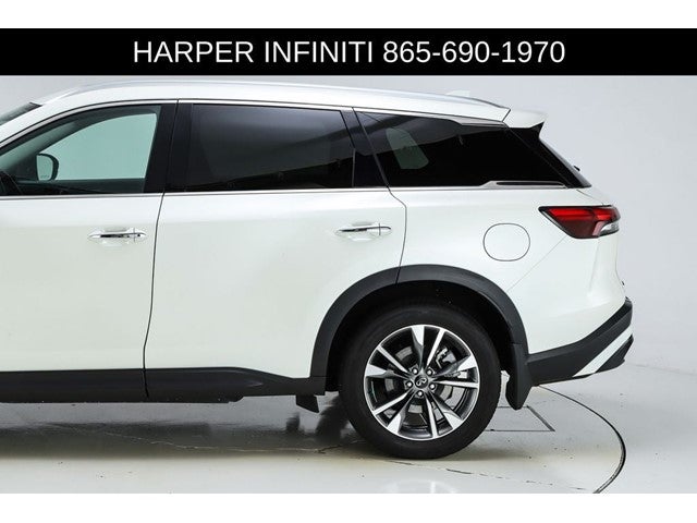 Harper INFINITI is pumped up to offer this great 2023 INFINITI QX60 in Majestic White HARPER INFINITI believes in the quality of the vehicles we sell so well that we provide an UNLIMITED MILES, POWERTRAIN WARRANTY on every new and qualifying pre-owned vehicle it sells!!! This warranty is good at any ASE certified shop in the 48 continental United States!! Check out all these great options Cargo Package (Cargo Mat (Reversible) and First Aid Kit), Navigation system: INFINITI InTouch Navigation, 3rd row seats: bench, 4-Wheel Disc Brakes, 4.334 Axle Ratio, 9 Speakers, ABS brakes, Air Conditioning, Alloy wheels, AM/FM radio: SiriusXM, Anti-whiplash front head restraints, Auto High-beam Headlights, Auto-dimming door mirrors, Auto-dimming Rear-View mirror, Automatic temperature control, Brake assist, Bumpers: body-color, Climate-Controlled Front Bucket Seats, Delay-off headlights, Driver door bin, Driver vanity mirror, Dual front impact airbags, Dual front side impact airbags, Electronic Stability Control, Emergency communication system, Floor Mats on Bench Seats w/3rd Row Tray, Four wheel independent suspension, Front anti-roll bar, Front Bucket Seats, Front Center Armrest, Front dual zone A/C, Front reading lights, Fully automatic headlights, Garage door transmitter: HomeLink, Heated door mirrors, Heated front seats, Heated steering wheel, Illuminated entry, Knee airbag, Leather Shift Knob, Leather steering wheel, Leather-Appointed Seating Surfaces, Literature Kit, Low tire pressure warning, Memory seat, Occupant sensing airbag, Outside temperature display, Overhead airbag, Overhead console, Panic alarm, Passenger door bin, Passenger vanity mirror, Power door mirrors, Power driver seat, Power Liftgate, Power moonroof, Power passenger seat, Power steering, Power windows, Radio data system, Radio: AM/FM Audio System, Rain sensing wipers, Rear air conditioning, Rear anti-roll bar, Rear reading lights, Rear seat center armrest, Rear side impact airbag, Rear window defroster, Rear window wiper, Reclining 3rd row seat, Remote keyless entry, Security system, Speed control, Speed-sensing steering, Speed-Sensitive Wipers, Splash Guards, Split folding rear seat, Spoiler, Steering wheel memory, Steering wheel mounted audio controls, Tachometer, Telescoping steering wheel, Tilt steering wheel, Traction control, Trip computer, Turn signal indicator mirrors, Variably intermittent wipers, Ventilated front seats, and Wheels: 20 x 8J Sporty Machined Aluminum Alloy.