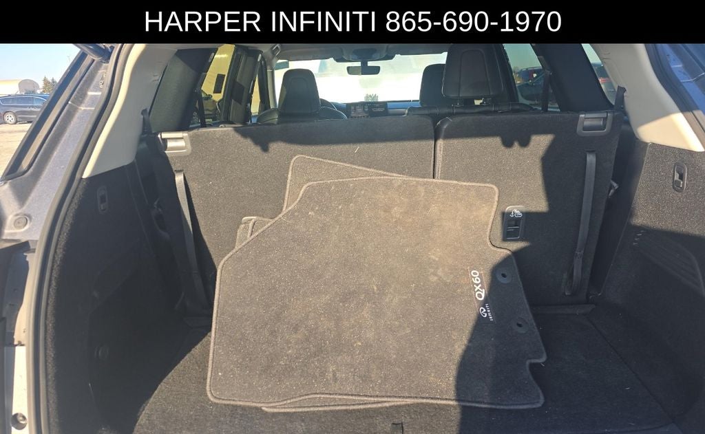 At Harper INFINITI, we are excited to offer this captivating QX60 LUXE in Gray. We believe in the quality of the vehicles we sell so well that we provide an UNLIMITED MILES, POWERTRAIN WARRANTY on every new and qualifying pre-owned vehicle it sells!!! This warranty is good at any ASE certified shop in the 48 continental United States!! Check out all these great options - 9 Speakers, AM/FM radio: SiriusXM, Radio data system, Radio: AM/FM Audio System, 4.334 Axle Ratio, Air Conditioning, Automatic temperature control, Front dual zone A/C, Rear air conditioning, Rear window defroster, Memory seat, Power driver seat, Power steering, Power windows, Remote keyless entry, Steering wheel memory, Steering wheel mounted audio controls, Speed control, Power Liftgate, Brake assist, Electronic Stability Control, Four wheel independent suspension, Speed-sensing steering, Traction control, Auto High-beam Headlights, Delay-off headlights, Fully automatic headlights, Auto-dimming door mirrors, Bumpers: body-color, Heated door mirrors, Power door mirrors, Splash Guards, Spoiler, Turn signal indicator mirrors, Auto-dimming Rear-View mirror, Climate-Controlled Front Bucket Seats, Driver door bin, Driver vanity mirror, Floor Mats on Bench Seats w/3rd Row Tray, Front reading lights, Garage door transmitter: HomeLink, Heated steering wheel, Illuminated entry, Leather Shift Knob, Leather steering wheel, Literature Kit, Outside temperature display, Overhead console, Passenger vanity mirror, Rear reading lights, Rear seat center armrest, Tachometer, Telescoping steering wheel, Tilt steering wheel, Trip computer, Navigation system: INFINITI InTouch Navigation, 4-Wheel Disc Brakes, ABS brakes, Anti-whiplash front head restraints, Dual front impact airbags, Dual front side impact airbags, Emergency communication system, Front anti-roll bar, Knee airbag, Low tire pressure warning, Occupant sensing airbag, Overhead airbag, Rear anti-roll bar, Rear side impact airbag, 3rd row seats: bench, Front Bucket Seats, Front Center Armrest, Heated front seats, Leather-Appointed Seating Surfaces, Power passenger seat, Reclining 3rd row seat, Split folding rear seat, Ventilated front seats, Panic alarm, Security system, Passenger door bin, Power moonroof, Alloy wheels, Wheels: 20 x 8J Sporty Machined Aluminum Alloy, Rain sensing wipers, Rear window wiper, Speed-Sensitive Wipers, Variably intermittent wipers.