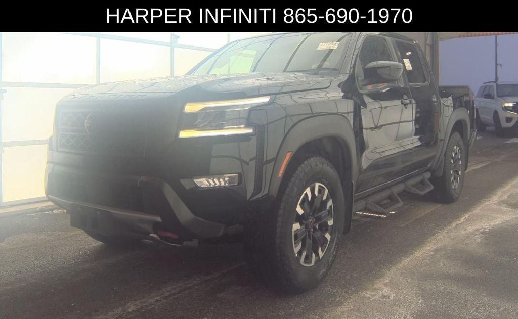 At Harper Infiniti, we understand the importance of finding the right vehicle to match your lifestyle. That's why we're excited to offer this impressive 2023 Nissan Frontier PRO-4X in Black. HARPER INFINITI believes in the quality of the vehicles we sell so well that we provide an UNLIMITED MILES, POWERTRAIN WARRANTY on every new and qualifying pre-owned vehicle it sells!!! This warranty is good at any ASE certified shop in the 48 continental United States!! Check out all these great options: Navigation system: Nissan Navigation with Voice Recognition, Off-Road Style Step Rails, Off-Road Protection Package, Tow Package, Illuminated Kick Plates, and PRO-4X Mud Flaps.