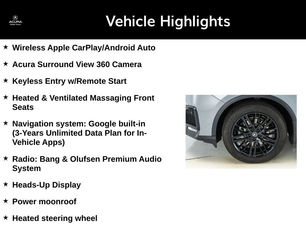 Elevating your driving experience, this MDX is meticulously crafted with a host of premium features that cater to your every need. Indulge in the seamless integration of Google built-in navigation, the unparalleled sound quality of the Bang & Olufsen Premium Audio System, and the added convenience of the Heads-Up Display.