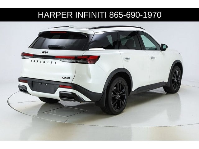 Harper INFINITI is excited to offer this stunning 2025 INFINITI QX60 LUXE in White. HARPER INFINITI believes in the quality of the vehicles we sell so well that we provide an UNLIMITED MILES, POWERTRAIN WARRANTY on every new and qualifying pre-owned vehicle it sells!!! This warranty is good at any ASE certified shop in the 48 continental United States!! Check out all these great options - Bose Performance Series 17-Speaker Sound System, Power Liftgate, Panoramic Moonroof, Heated and Ventilated Front Seats, and more!