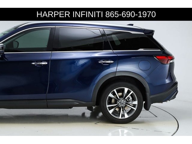 Harper INFINITI is pleased to offer this fantastic-looking 2025 INFINITI QX60 in Grand Blue HARPER INFINITI believes in the quality of the vehicles we sell so well that we provide an UNLIMITED MILES, POWERTRAIN WARRANTY on every new and qualifying pre-owned vehicle it sells!!! This warranty is good at any ASE certified shop in the 48 continental United States!! Check out all these great options Navigation system: INFINITI InTouch Navigation, 17 Speakers, 3rd row seats: bench, 4-Wheel Disc Brakes, ABS brakes, Air Conditioning, Alloy wheels, AM/FM radio: SiriusXM, Anti-whiplash front head restraints, Apple CarPlay/Android Auto, Auto High-beam Headlights, Auto tilt-away steering wheel, Auto-dimming door mirrors, Auto-dimming Rear-View mirror, Automatic temperature control, Bose Performance Series 17-Speaker Sound System, Brake assist, Bumpers: body-color, Climate Controlled Front Bucket Seats, Delay-off headlights, Driver door bin, Driver vanity mirror, Dual front impact airbags, Dual front side impact airbags, Electronic Stability Control, Emergency communication system: INFINITI InTouch, Exterior Parking Camera Rear, Four wheel independent suspension, Front anti-roll bar, Front Bucket Seats, Front Center Armrest, Front dual zone A/C, Front reading lights, Fully automatic headlights, Garage door transmitter: HomeLink, Heated door mirrors, Heated front seats, Heated rear seats, Heated steering wheel, Illuminated entry, Knee airbag, Leather Shift Knob, Leather steering wheel, Leather-Appointed Seating Surfaces, Low tire pressure warning, Memory seat, Occupant sensing airbag, Outside temperature display, Overhead airbag, Overhead console, Panic alarm, Passenger door bin, Passenger vanity mirror, Power door mirrors, Power driver seat, Power Liftgate, Power moonroof, Power passenger seat, Power steering, Power windows, Radio data system, Radio: Bose Performance Series, Rain sensing wipers, Rear air conditioning, Rear anti-roll bar, Rear reading lights, Rear seat center armrest, Rear side impact airbag, Rear window defroster, Rear window wiper, Reclining 3rd row seat, Remote keyless entry, Security system, Speed control, Speed-sensing steering, Speed-Sensitive Wipers, Split folding rear seat, Spoiler, Steering wheel memory, Steering wheel mounted audio controls, Tachometer, Telescoping steering wheel, Tilt steering wheel, Traction control, Trip computer, Turn signal indicator mirrors, Variably intermittent wipers, Ventilated front seats, and Wheels: 20 x 8J Sporty Machined Aluminum Alloy.