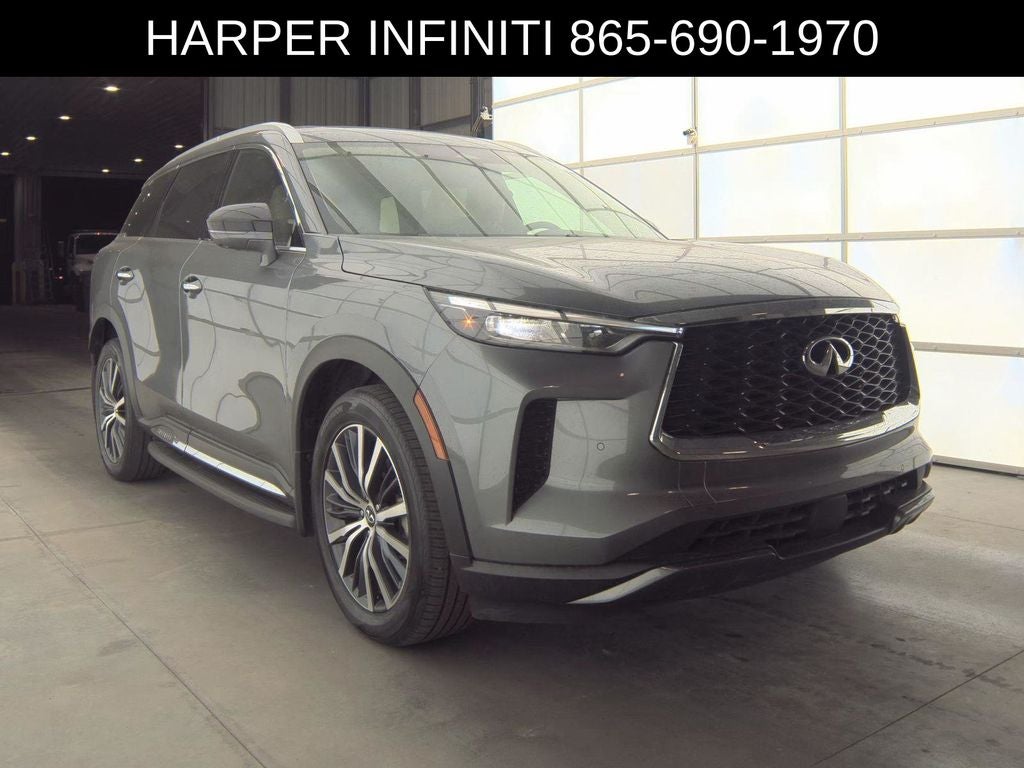 Harper INFINITI is excited to offer this captivating 2025 INFINITI QX60 Sensory in Gray. HARPER INFINITI believes in the quality of the vehicles we sell so well that we provide an UNLIMITED MILES, POWERTRAIN WARRANTY on every new and qualifying pre-owned vehicle it sells!!! This warranty is good at any ASE certified shop in the 48 continental United States!! Check out all these great options - 2025 INFINITI QX60 Sensory in Gray, Vision Package, Adaptive Front Lighting System, 10.8 Head-Up Display, Smart Rear View Mirror, Bose Performance Series 17-Speaker Sound System, Dual-Zone Automatic Climate Control, Heated and Ventilated Front Seats, Power Liftgate, Panoramic Moonroof.